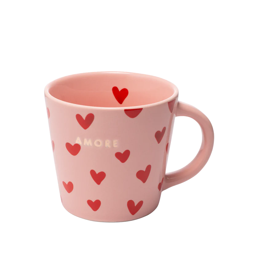 Ceramic cappuccino mok hearts AMORE pink