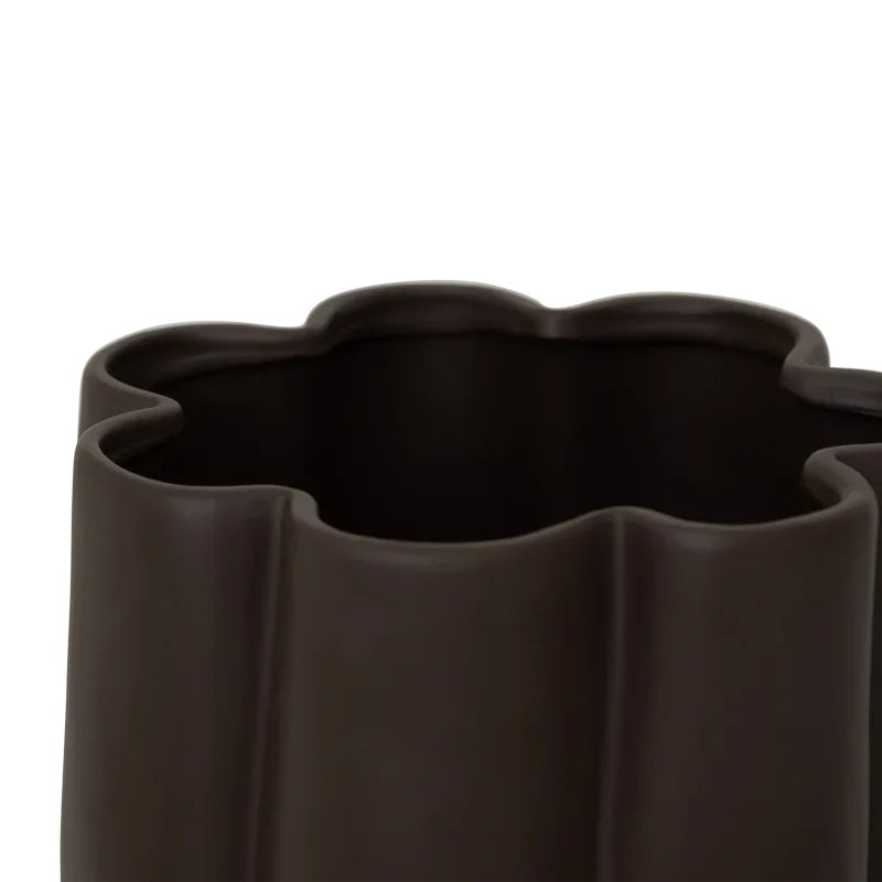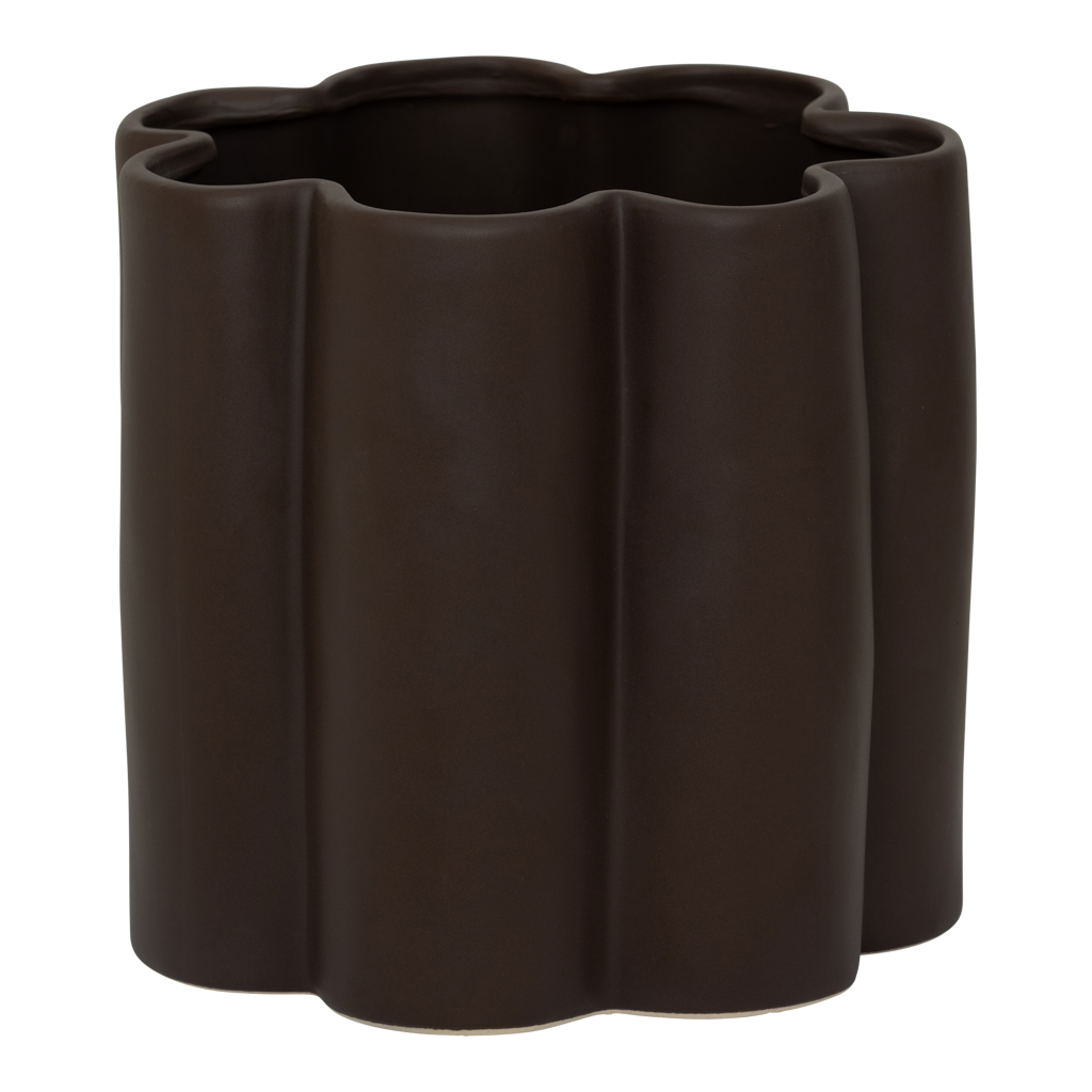 Pot Nari - een handgemaakte keramische plantenbak met een buitengewoon design. Hij is volumineus, mollig en heeft van die ongelooflijk organische, verticale, naar buiten gerichte schulpranden. Met zijn matte afwerking in de aardse kleur Fudge voegt hij warmte en karakter toe aan elke kamer. Zet je favoriete planten in de pot of zet hem op zichzelf als een opvallend stuk. We adviseren om de pot voor gebruik te testen op 100% waterdichtheid.