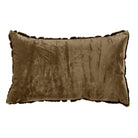 - De voorkant is zacht en gemaakt van bont met een geometrisch blokpatroon, de achterkant van effen, gladde velours.