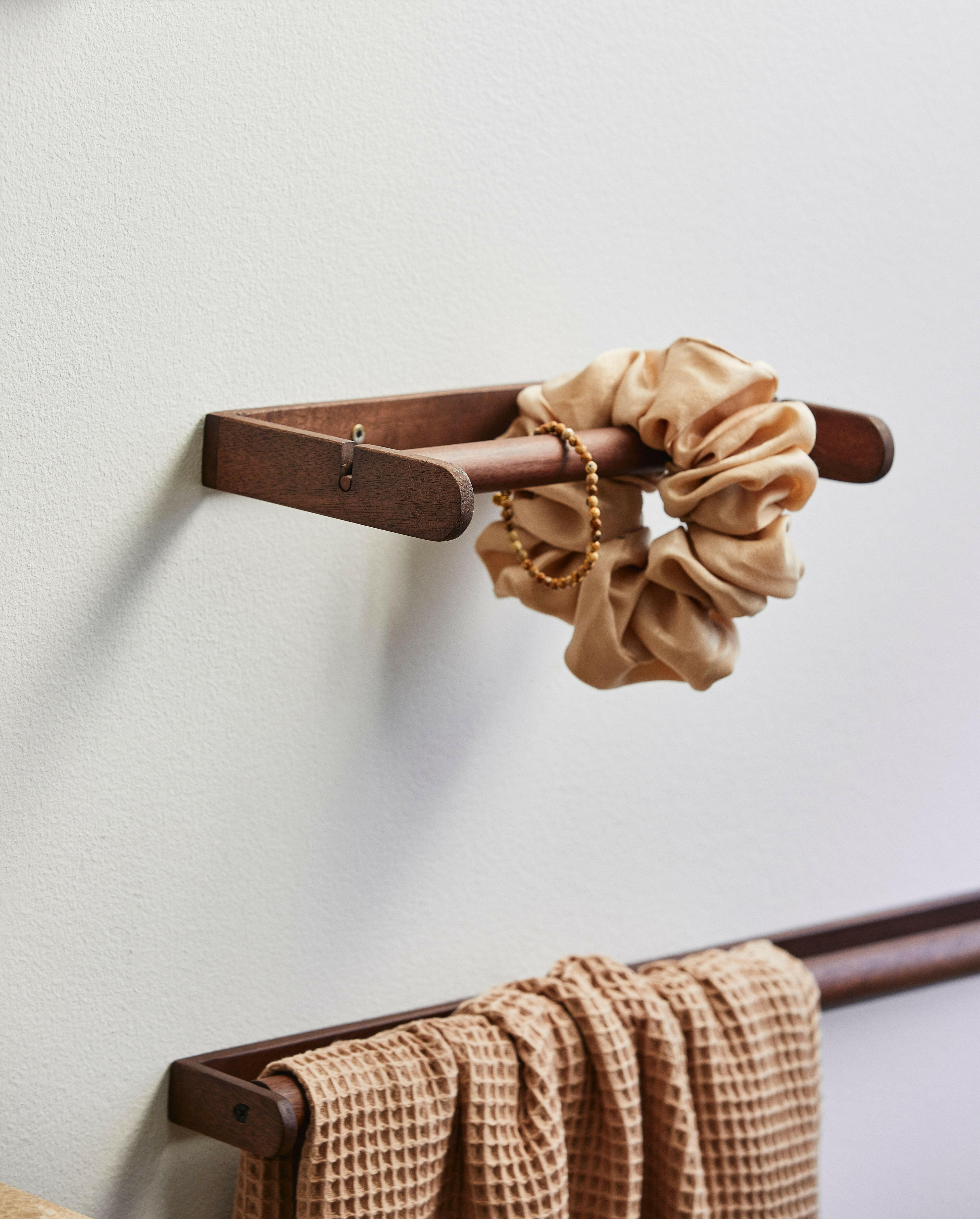 ZATON handdoekenrek van donker acaciahout. ZATON wordt geleverd in een eenvoudig, organisch ontwerp dat zowel praktisch is als een warm tintje aan uw interieur toevoegt. Gebruik ZATON voor handdoeken in uw badkamer, maar ook voor theedoeken in uw keuken.