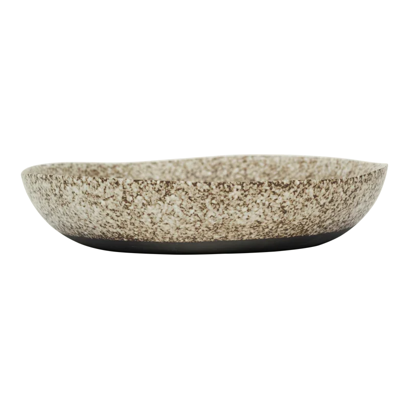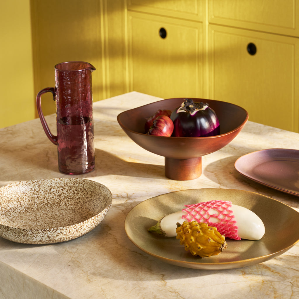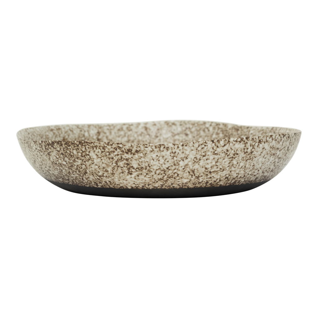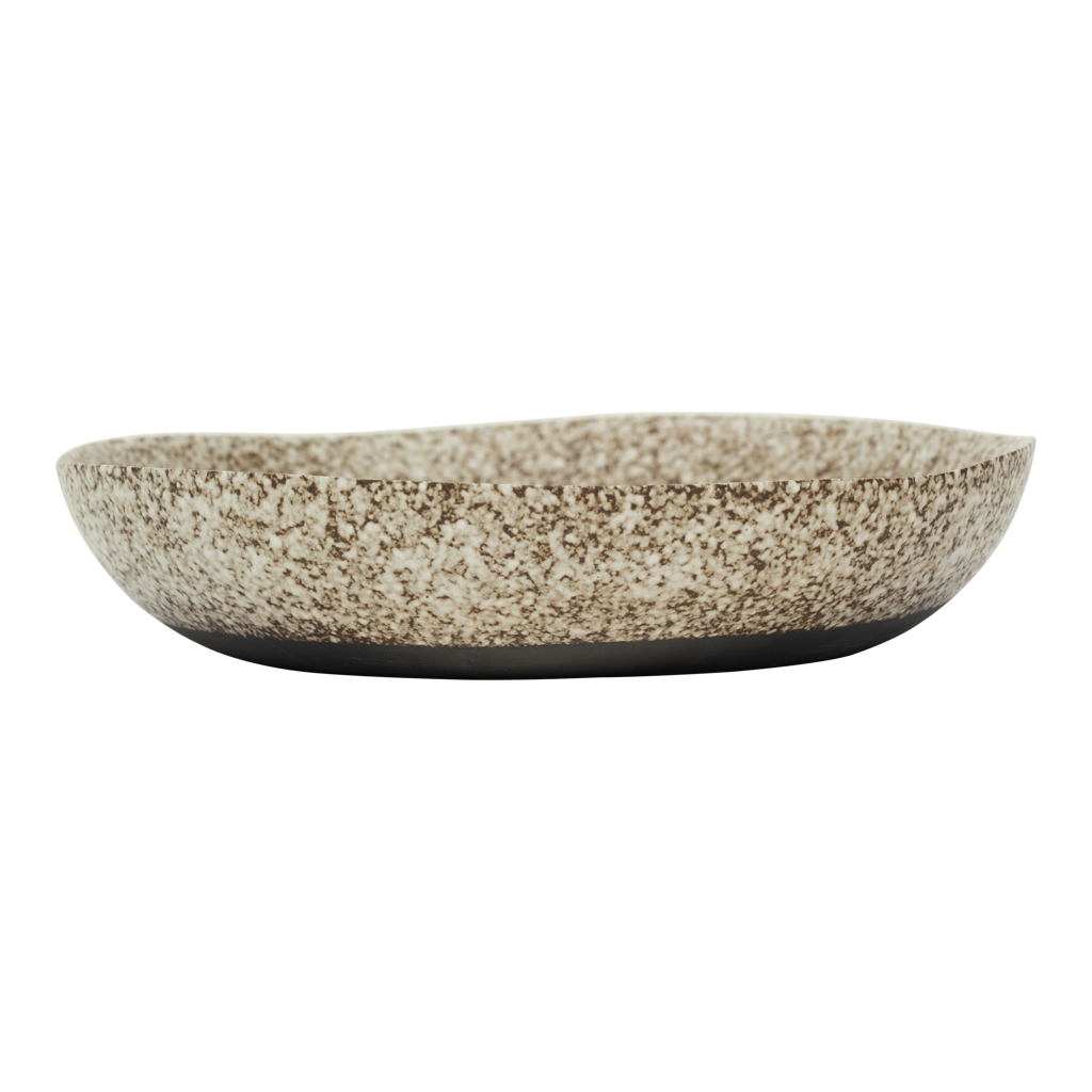 Het is de ongelooflijke, reactieve afwerking die de Nox schaal van Urban Nature Culture uniek maakt. Met de hand gemaakt door Indiase ambachtslieden. Elk exemplaar is anders, uniek en absoluut verbluffend. Het brengt een stedelijk stilleven tot leven, met een beige ondertoon die wordt uitgedaagd door de reactieve glazuurlaag. Dit product is gemaakt van 50% gerecycled keramiek en 50% nieuwe klei, GRS-gecertificeerd (Global Recycled Standard).