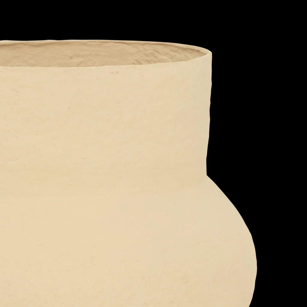 Frida is handgemaakt van katoen-maché – een eco-friendly materiaal van gerecycled textielafval uit de modewereld. De royale organische vorm en zachte, neutrale tint geven volume en rust aan je interieur. Als woondecoratie of met een binnenvaas voor verse bloemen – een statement in design maar met een stille kracht.